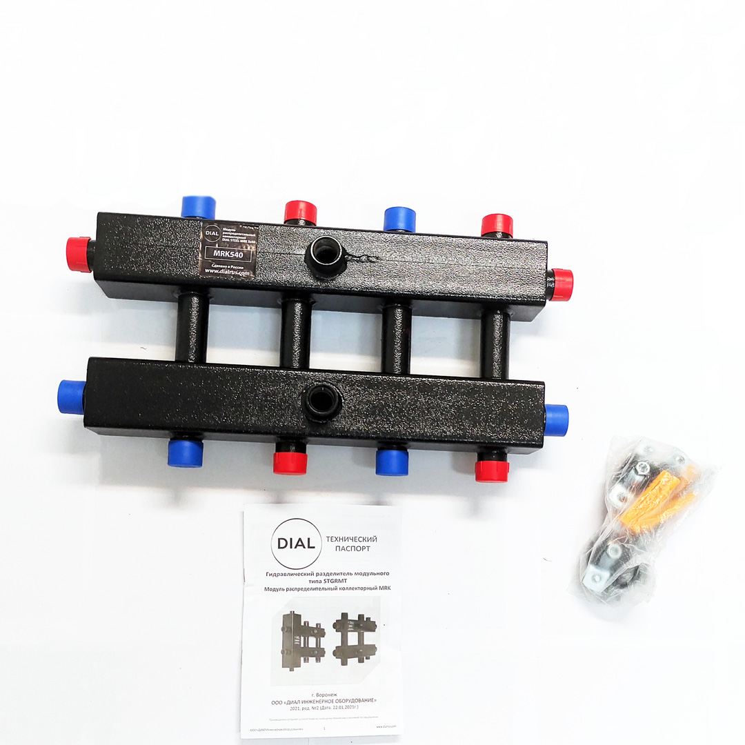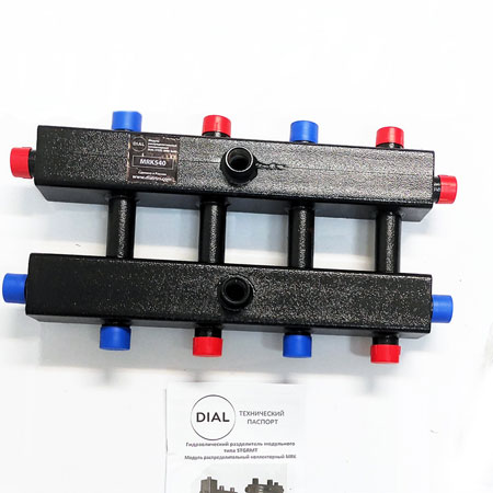 Распределительные коллекторные модули Dial Steel MRK 4х40 предназначены для равномерного распределения теплоносителя по контурам потребителей, а также для защиты насосных групп контуров потребителей от перепада давления с возможностью отключения групп в рабочей системе по отдельности. Могут использоваться для подключения нескольких котлов в «каскад». Для полноценной работы модуля в системе с одним котлом и распределения теплоносителя по контурам требуется установка гидравлического разделителя соответствующей мощности.