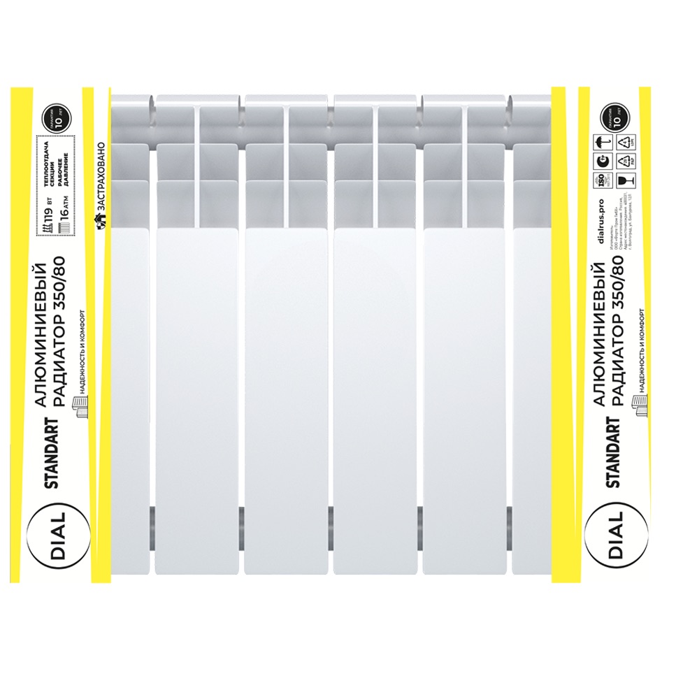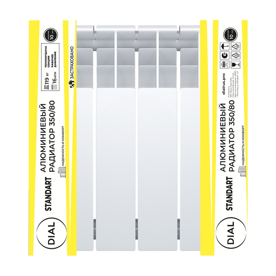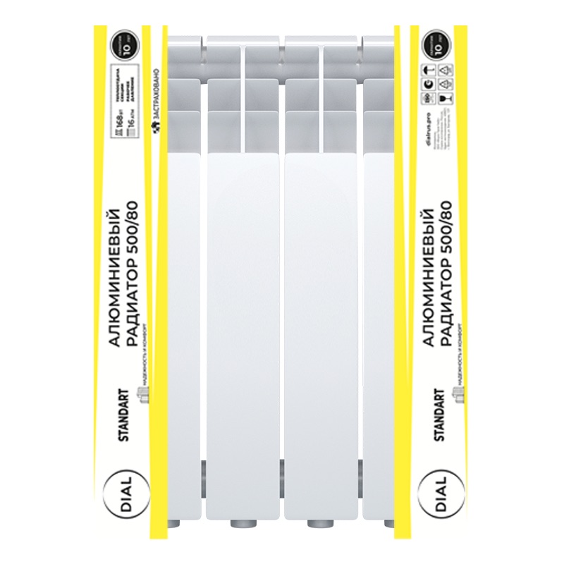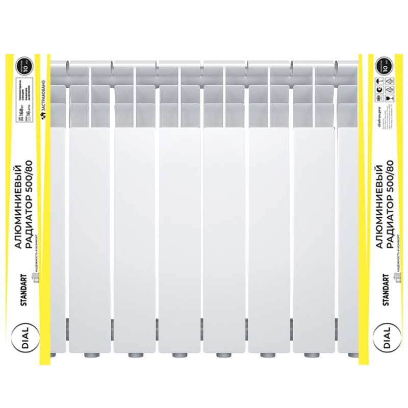 Радиаторы алюминиевые Dial Standart AL — это современные, высокоэффективные отопительные приборы, предназначенные для использования в системах автономного и централизованного водяного отопления жилых, общественных и промышленных зданий. Модельный ряд с межосевым расстоянием 200, 350 и 500 мм, а также разной глубиной секции (80, 96 и 100 мм) позволяет подобрать оптимальное решение для различных тепловых и монтажных требований.