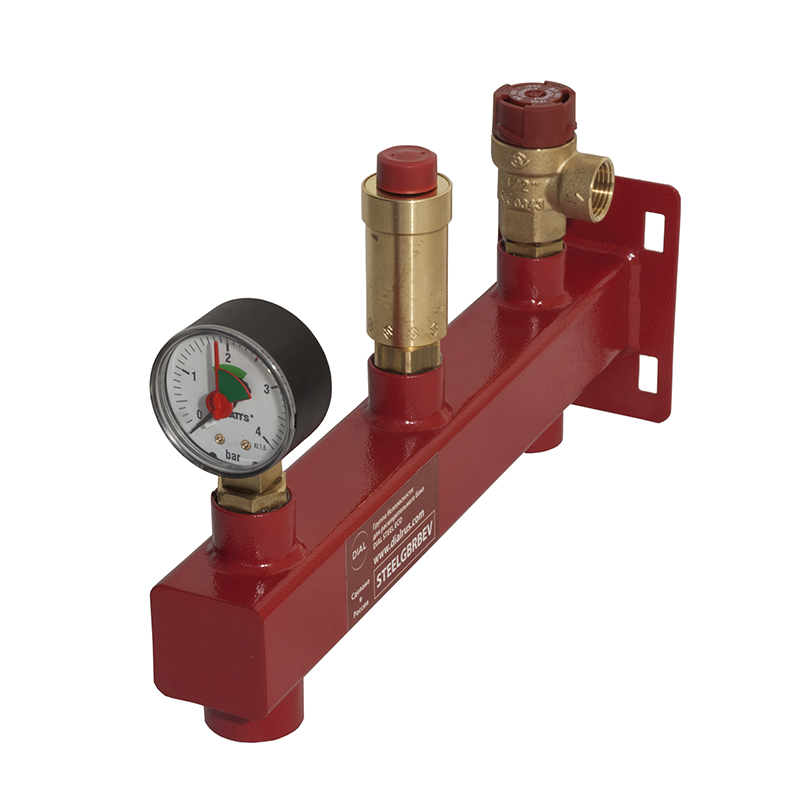 Группы безопасности для расширительного бака DIAL STEEL STANDART (3 бара) защищают систему от превышения давления, завоздушивании, выполняют функцию индикации значения давления системы.